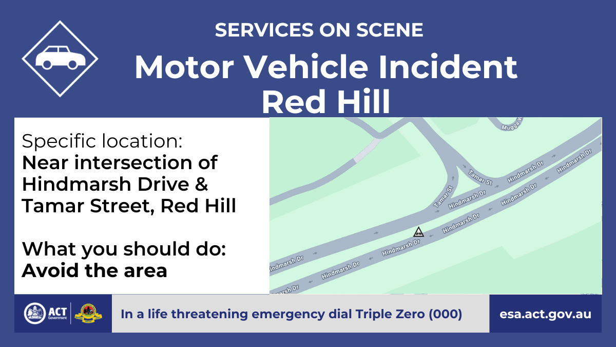 There's been a motor vehicle incident on Hindmarsh Drive, near the intersection with Tamar Street in Red Hill.