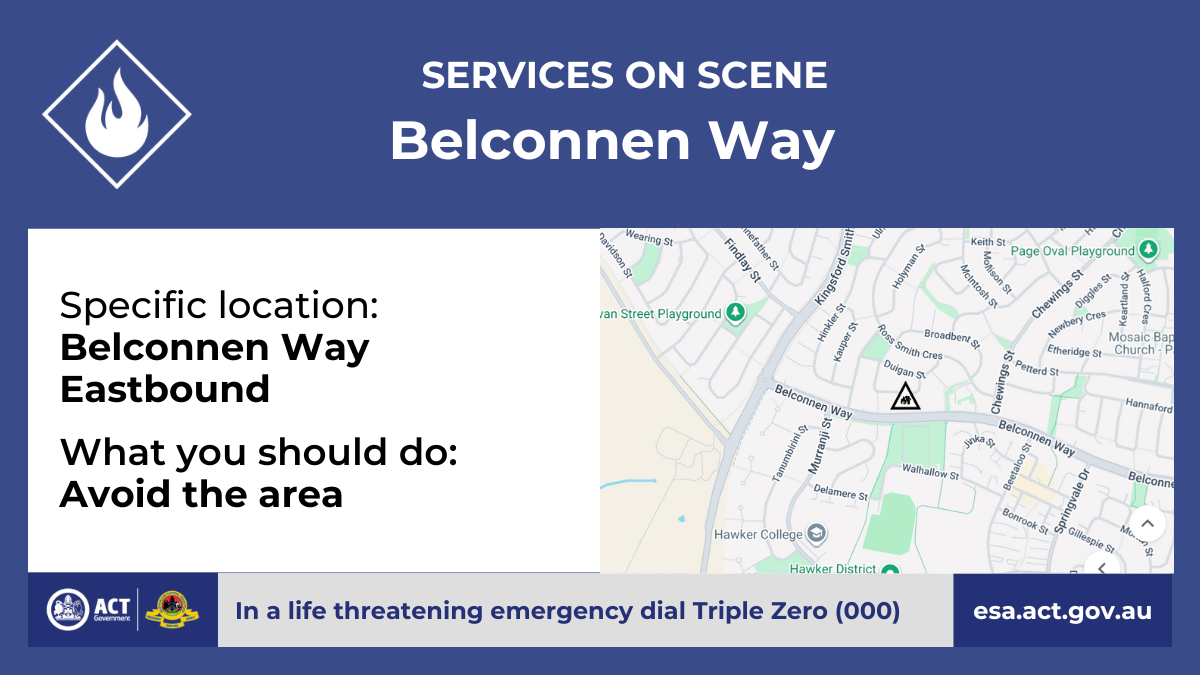 The fire has been extinguished, however, the eastbound lanes of Belconnen Way are currently closed.