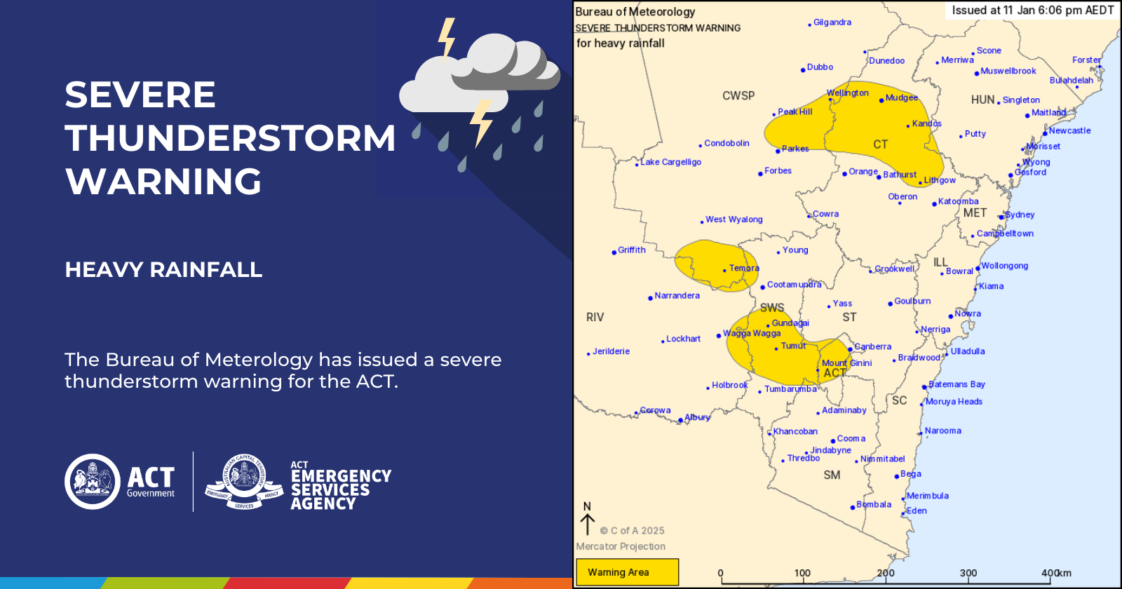 The weather situation can change rapidly, check http://www.bom.gov.au/act/ for weather updates and warnings.